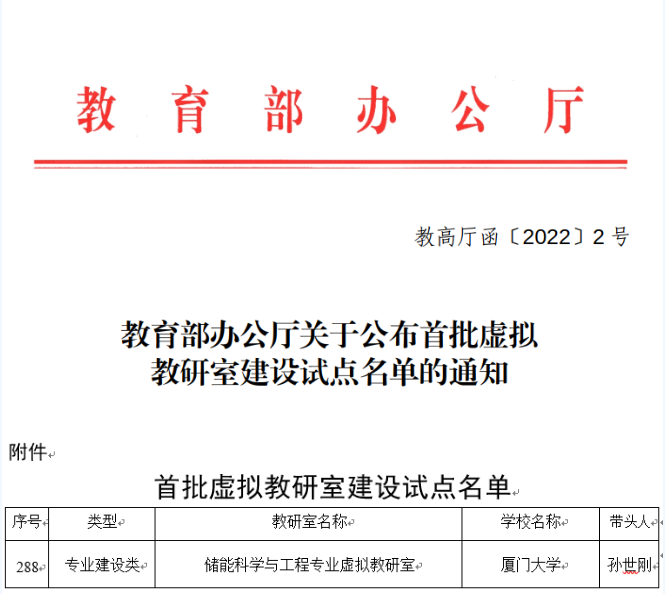 中國儲能網(wǎng)訊:近日,教育部下發(fā)《教育部關(guān)于公布首批虛擬教研室建設(shè)試點(diǎn)名單的通知》(教高廳函〔2022〕2號),公布首批虛擬教研室建設(shè)試點(diǎn)名單。由廈門大學(xué)牽頭,聯(lián)合華北電力大學(xué)、哈爾濱工業(yè)大學(xué)、重慶大學(xué)、華中科技大學(xué)、山東大學(xué)、北京科技大學(xué)、武漢理工大學(xué)、中國礦業(yè)大學(xué)、中國石油大學(xué)(華東)、中國石油大學(xué)(北京)、青海大學(xué)、上海理工大學(xué)、福州大學(xué)、福建師范大學(xué)、西南石油大學(xué)、長沙理工大學(xué)、南京工程學(xué)院、江蘇理工學(xué)院、大理大學(xué)、遼寧科技大學(xué)、沈陽工程學(xué)院、河北建筑工程學(xué)院等共23所設(shè)置有儲能科學(xué)與工程專業(yè)的高校,寧德時代新能源科技股份有限公司、國家電力投資集團(tuán)、廈鎢新能源材料股份有限公司等儲能產(chǎn)業(yè)鏈上下游頭部企業(yè),國家一級出版社化學(xué)工業(yè)出版社申報的儲能科學(xué)與工程專業(yè)虛擬教研室成功獲批。