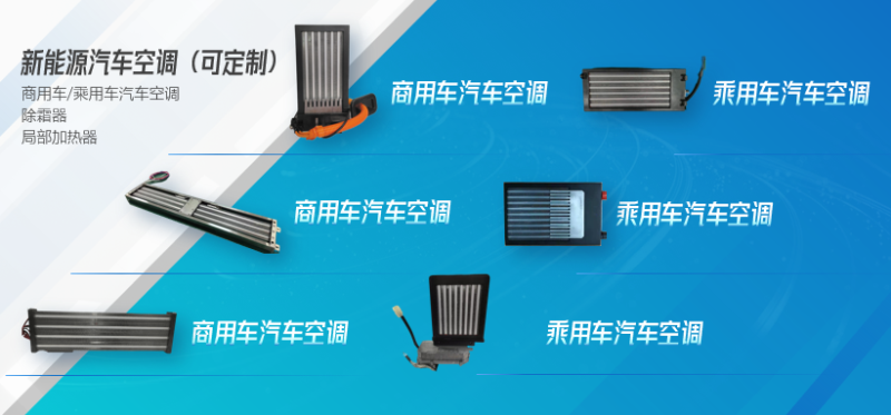 新能源汽車暖風系列。商用車汽車空調(diào)、乘用車汽車空調(diào)、波紋式除霜器、局部加熱器。