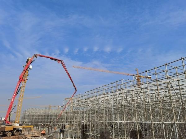 項(xiàng)目經(jīng)理趙忠介紹,由于項(xiàng)目單體建筑多,分布面積廣,16棟樓體南北方向距離700多米。結(jié)構(gòu)施工時(shí),共投入近9000噸盤(pán)扣式腳手架,確保結(jié)構(gòu)施工資源供應(yīng)充足。在架體支撐時(shí),采用固定的三角形格構(gòu)式結(jié)構(gòu),有效保證架體穩(wěn)定和工人施工安全,兼具用量少、重量輕、搭建和拆除速度快等優(yōu)點(diǎn),有效縮短主體結(jié)構(gòu)施工工期。