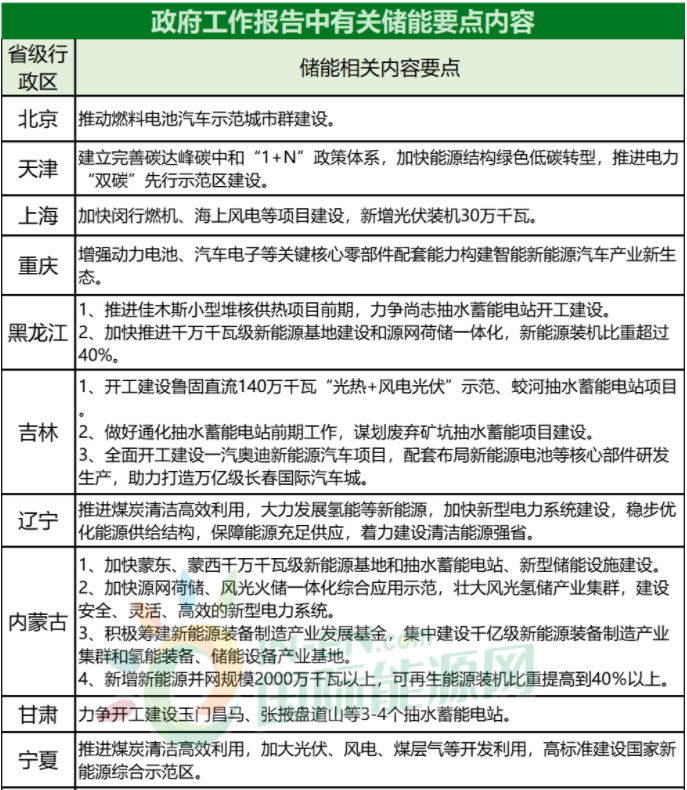 儲能頭條(ID:chuneng365)匯總了31個省級行政區(qū)2022年政府工作報告內(nèi)容中關(guān)于儲能的要點: