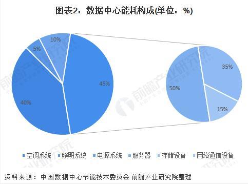 數(shù)據(jù)中心的耗能部分主要包括IT設(shè)備、制冷系統(tǒng)、供配電系統(tǒng)、照明系統(tǒng)及其他設(shè)施(包括安防設(shè)備、滅火、防水、傳感器以及相關(guān)數(shù)據(jù)中心建筑的管理系統(tǒng)等)。整體來看,由服務(wù)器、存儲和網(wǎng)絡(luò)通信設(shè)備等所構(gòu)成的IT設(shè)備系統(tǒng)所產(chǎn)生的功耗約占數(shù)據(jù)中心總功耗的45%。其中服務(wù)器系統(tǒng)約占50%,存儲系統(tǒng)約占35%,網(wǎng)絡(luò)通信設(shè)備約占15%??照{(diào)系統(tǒng)仍然是數(shù)據(jù)中心提高能源效率的重點環(huán)節(jié),它所產(chǎn)生的功耗約占數(shù)據(jù)中心總功耗的40%。電源系統(tǒng)和照明系統(tǒng)分別占數(shù)據(jù)中心總耗電量的10%和5%。