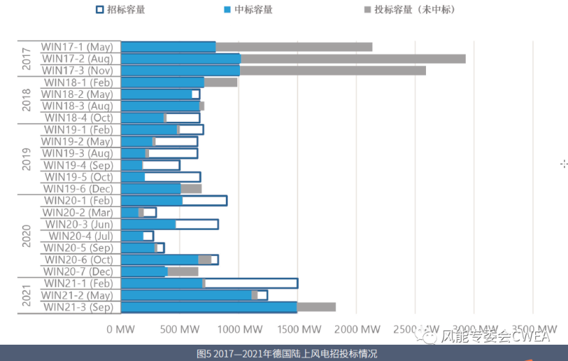 圖5 2017—2021年德國(guó)陸上風(fēng)電招投標(biāo)情況