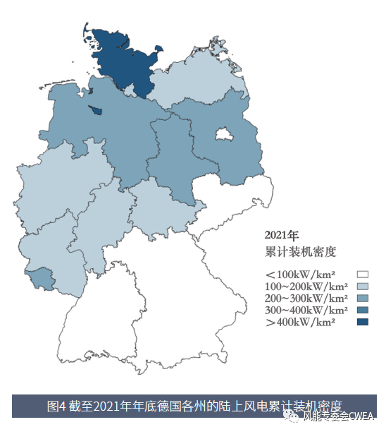 圖4 截至2021年年底德國(guó)各州的陸上風(fēng)電累計(jì)裝機(jī)密度