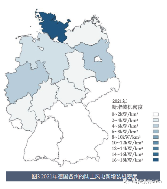 圖3 2021年德國(guó)各州的陸上風(fēng)電新增裝機(jī)密度