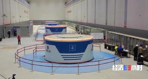 四號(hào)發(fā)電機(jī)組總重超過(guò)了2100噸。這個(gè)龐然大物每轉(zhuǎn)一圈可以發(fā)出11.6度電,1秒鐘可以轉(zhuǎn)8.33圈,發(fā)出96.6度電。