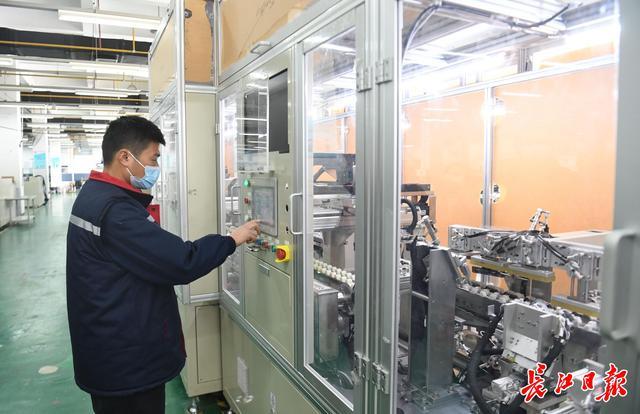 2022年2月22日,武漢逸飛激光股份有限公司技術(shù)人員在操作自主研發(fā)的全極耳電池生產(chǎn)線(xiàn)。長(zhǎng)江日?qǐng)?bào)記者高勇 攝