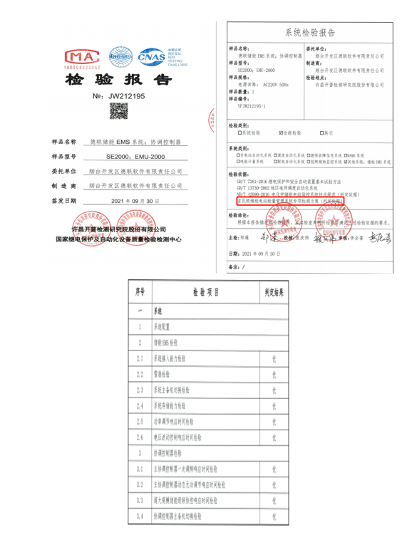 德聯(lián)儲(chǔ)能EMS系統(tǒng)可以根據(jù)儲(chǔ)能系統(tǒng)的規(guī)模,進(jìn)行靈活配置,既支持集裝箱內(nèi)就地小型EMS系統(tǒng),也支持100MW以上大型儲(chǔ)能EMS系統(tǒng)(目前已經(jīng)參與3個(gè)100MWH和2個(gè)200MWH儲(chǔ)能項(xiàng)目)。德聯(lián)軟件參與了國(guó)網(wǎng)GWH級(jí)儲(chǔ)能電站EMS能量管理系統(tǒng)檢測(cè),數(shù)據(jù)全優(yōu)。