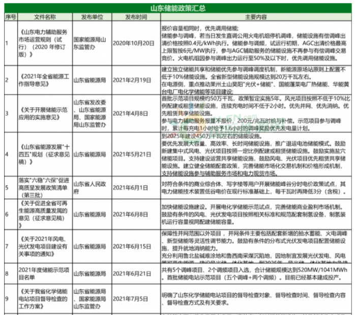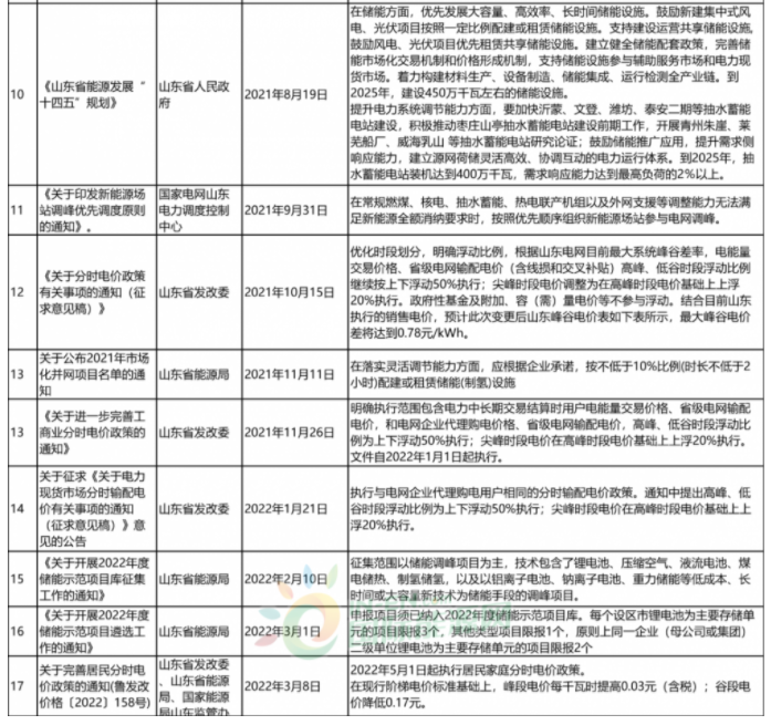 自2020年下半年開始,山東發(fā)布密集政策,來支持儲能發(fā)展,總結(jié)下來大致針對以下重點: