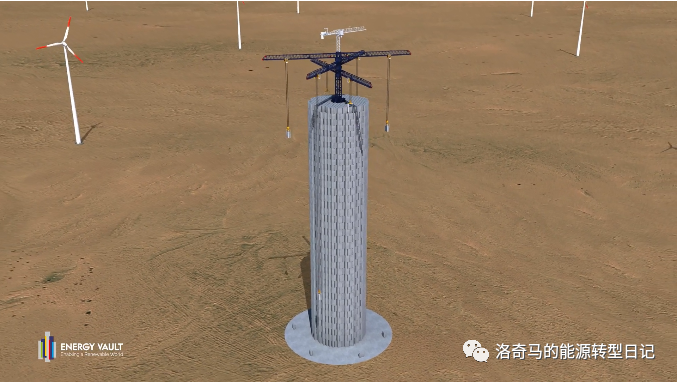 這一次軟銀投資的公司叫做Energy Vault,這家公司的技術(shù)叫做重力儲(chǔ)能(混凝土塔儲(chǔ)能),在先進(jìn)的軟件系統(tǒng)控制下,使用大型的塔吊,根據(jù)蓄電放電的需要,把每個(gè)重達(dá)35噸的混凝土塊,在塔吊周圍吊起最高可以堆砌到33層、120米高,這樣就把電能轉(zhuǎn)化成為混凝土塊的重力勢(shì)能。那電力短缺的時(shí)再把混凝土塊從高處放到低處,下落時(shí)候的重力勢(shì)能通過(guò)發(fā)電機(jī)重新轉(zhuǎn)化為電能。簡(jiǎn)單說(shuō)來(lái)這個(gè)過(guò)程有點(diǎn)像“搭積木”一樣,實(shí)現(xiàn)重力勢(shì)能和電能之間的轉(zhuǎn)換。