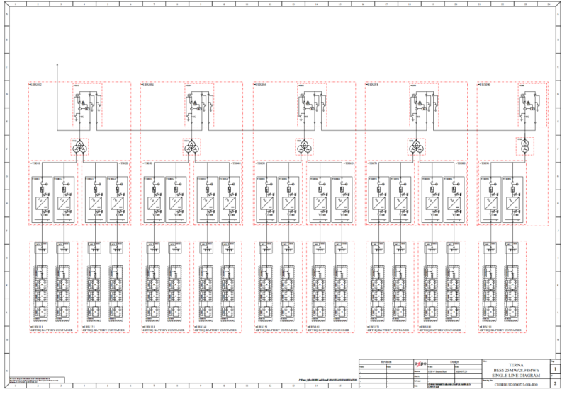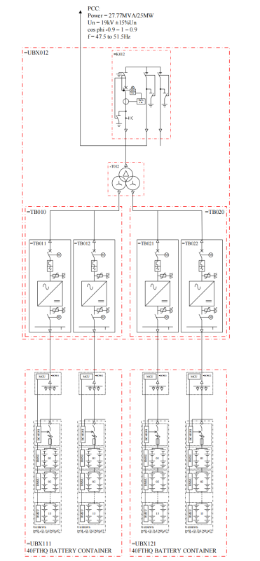 圖2 25MW/28.98MWh系統(tǒng)單線圖