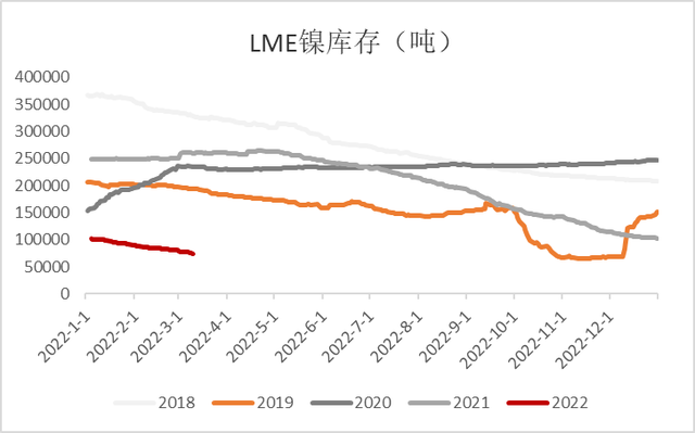 Wind數(shù)據(jù)顯示,2021年3月1日,倫敦金屬交易所鎳庫存為25.06萬噸。而截至2022年3月11日,庫存已降至7.57萬噸??梢钥闯?,庫存被大量消耗。高承君認(rèn)為,鎳庫存下降,很大一部分原因在于鎳豆被消耗了。