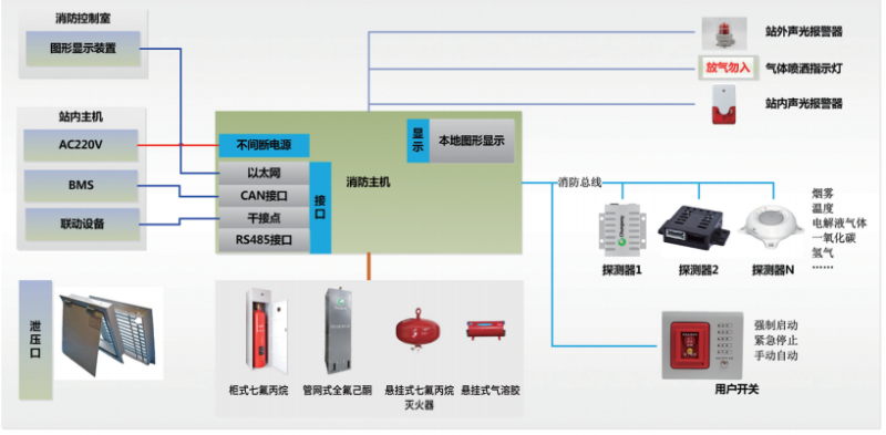 致力于絕對安全的儲能智慧消防系統(tǒng),產(chǎn)品具有多場景儲能系統(tǒng)應(yīng)用運(yùn)維管理的立體預(yù)警及多級聯(lián)動策略。系統(tǒng)由兩部分組成:自動消防主站后臺系統(tǒng)和儲能站自動消防系統(tǒng)組成。自動消防主站后臺系統(tǒng)由服務(wù)器、儲能站消防報(bào)警系統(tǒng)軟件及聲光報(bào)警器組成;儲能站自動消防系統(tǒng)由消防主機(jī)、復(fù)合型可燃?xì)怏w探測器、站外聲光報(bào)警、站內(nèi)聲光報(bào)警、放氣勿入指示、緊急啟停開關(guān)、滅火裝置、管道削防器材、應(yīng)急外部接組成。