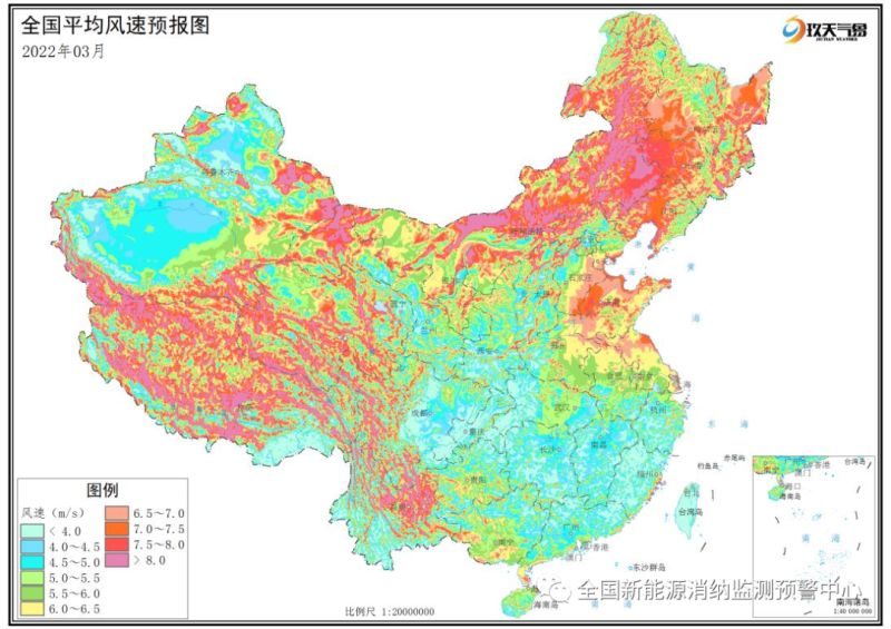 附圖5 全國(guó)2022年3月平均風(fēng)速分布預(yù)報(bào)圖