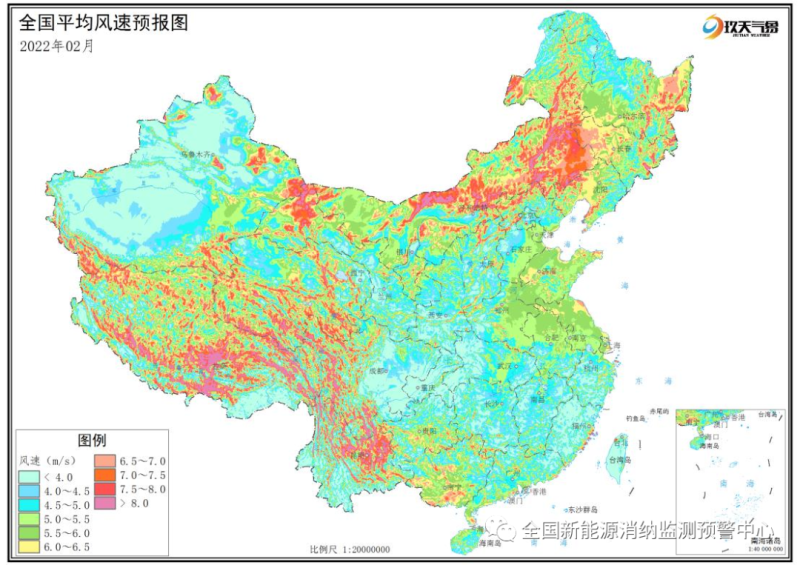 附圖3 全國(guó)2022年2月平均風(fēng)速分布預(yù)報(bào)圖