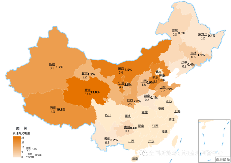 各地區(qū)2021年累計(jì)棄光電量(億千瓦時(shí))及棄光率
