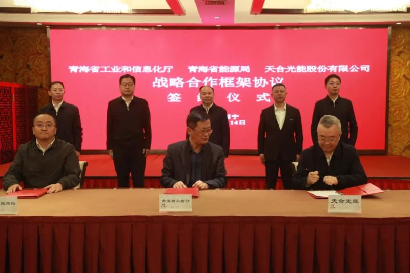 青海省政府副秘書長王志忠,西寧市市長孔令棟,海西州委常委、副州長李順福也見證了簽約,青海省工信廳、能源局、科技廳、生態(tài)環(huán)境廳、市場監(jiān)管局、西寧市政府、西寧經(jīng)濟(jì)開發(fā)區(qū)等部門和單位負(fù)責(zé)人出席簽約儀式。儀式由青海省工信廳副廳長楊忠主持,青海省工信廳副廳長何志,省能源局副局長康健,西寧市委常委、副市長李小牛,天合光能副總裁兼首席品牌官楊曉忠,天合光能助理副總裁趙金強(qiáng)分別在合作協(xié)議上簽字。