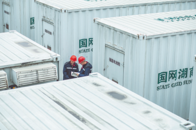 國網(wǎng)湖南綜合能源公司員工在長沙榔梨儲能電站檢查儲能設(shè)備運(yùn)行情況。 柴黎 攝