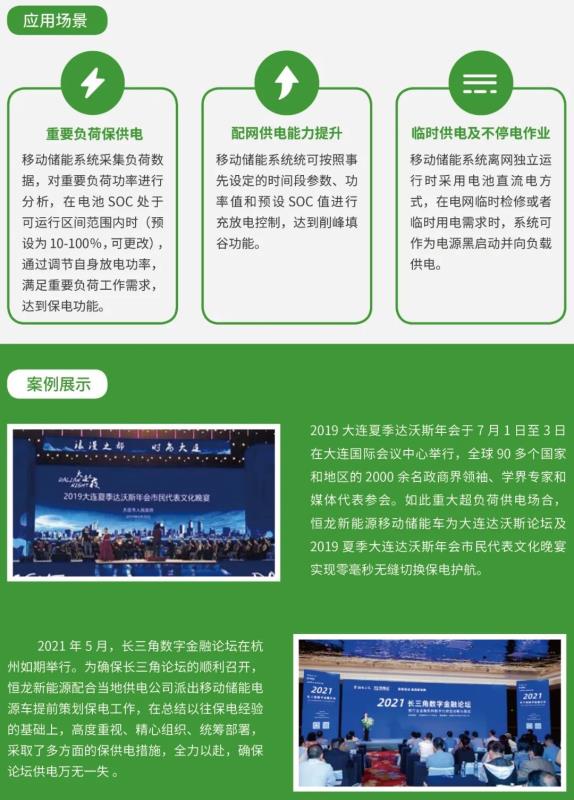 冬奧賽事、生活保障用電要求非常高,恒龍新能源提供的多臺移動儲能保電設備作為冬奧會供電保障工作的利器,不僅具有低噪音、零污染、電能優(yōu)質等優(yōu)勢,還可實現(xiàn)離并網(wǎng)毫秒級切換,能有效支持應急備電供電和配網(wǎng)臺區(qū)應急供電。