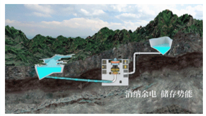 當新能源發(fā)電多發(fā)、電網(wǎng)消納不了時,抽水蓄能電站用多發(fā)的電將水從下水庫抽到上水庫,轉(zhuǎn)化為勢能儲存起來。