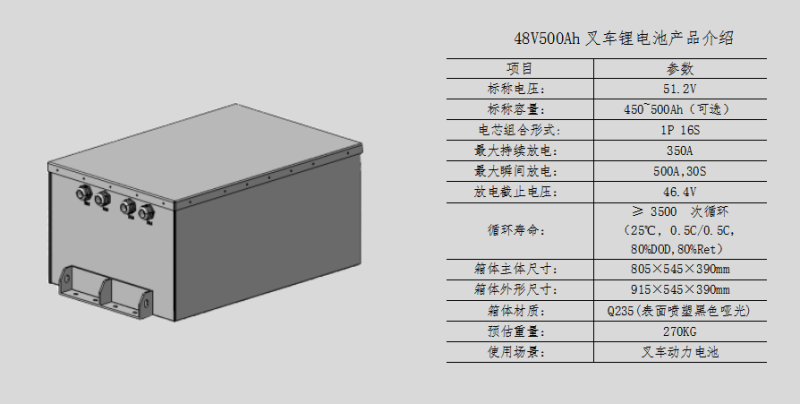 具備80V500Ah與48V500Ah兩種型號(hào),可為客戶提供定制化服務(wù),專注為叉車提供鋰電驅(qū)動(dòng)解決方案?;谛乱淮膭?dòng)力技術(shù)和電源管理系統(tǒng),相比傳統(tǒng)鉛酸電池可節(jié)省50%綜合成本;相比傳統(tǒng)燃油可節(jié)省80%綜合成本。具備高安全、高效率、長壽命、環(huán)保、隨充隨用、免維護(hù)等特性。