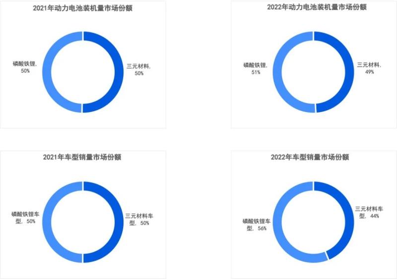 動(dòng)力電池主要分為三元?jiǎng)恿﹄姵睾土姿徼F鋰動(dòng)力電池,近幾年磷酸鐵鋰電池裝機(jī)量占比一路走高,相應(yīng)地三元?jiǎng)恿﹄姵卣急瘸掷m(xù)走低。2022年是A級(jí)車(chē)市場(chǎng)走強(qiáng)的機(jī)會(huì),也是磷酸鐵鋰電池繼續(xù)提高占比的推力。