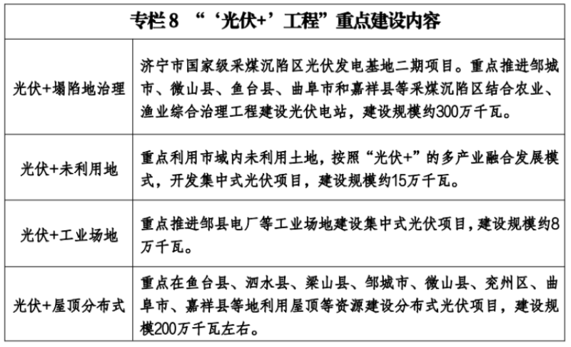 濟(jì)寧市能源發(fā)展“十四五”規(guī)劃要求:到2025年,建成、在建可再生能源發(fā)電裝機(jī)總量達(dá)到800萬千瓦左右。其中光伏7GW,風(fēng)電0.95GW,儲能0.5GW。