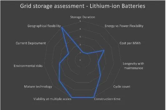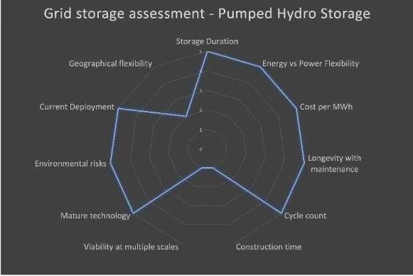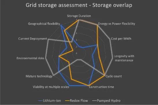 根據(jù)作者過去幾年的研究、出版物、工作成果以及與世界各地的專家的交流,作者預(yù)計有三種儲能技術(shù)將成為電網(wǎng)側(cè)儲能的主要提供者。作者提供的評估因素有如下幾點: