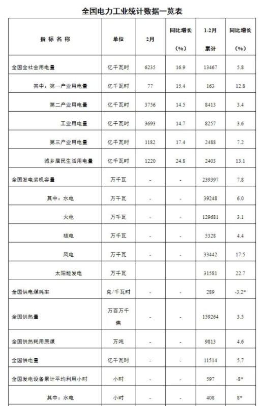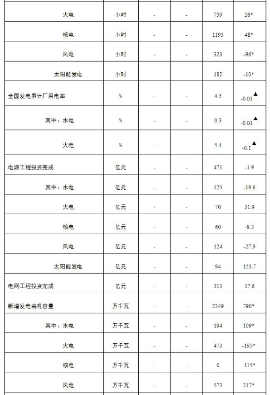 注:1.全社會(huì)用電量為全口徑數(shù)據(jù),全國供電量為調(diào)度口徑數(shù)據(jù)。2.“同比增長(zhǎng)”列中,標(biāo)*的指標(biāo)為絕對(duì)量;標(biāo)▲的指標(biāo)為百分點(diǎn)。