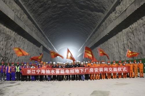 中國儲能網訊:3月17日,寧海抽水蓄能電站地下廠房安裝間移交工作面并舉行了儀式。