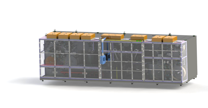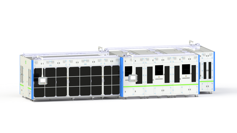 2021年華冠科技成功推出圓柱形電池中段裝配線,從卷繞到套管裝盤段,為客戶提供一體化整體智造解決方案,以32、46規(guī)格電芯為例,工藝流程包括:卷繞-電芯裝托-柔性鏈輸送-極耳揉平-集流盤焊接-鋼殼上料檢測(cè)&打碼-入殼-點(diǎn)底焊-縮口-滾槽-短路測(cè)試-裝盤-烘干-裝托-注液-激光焊蓋帽-封口-清洗-套管-噴碼-裝盤(化成)。整線凸輪驅(qū)動(dòng),高速穩(wěn)定;全線二維碼追溯,檢測(cè)、監(jiān)控參數(shù)確保高品質(zhì)運(yùn)轉(zhuǎn);整線自動(dòng)化程度高,節(jié)約人工成本。