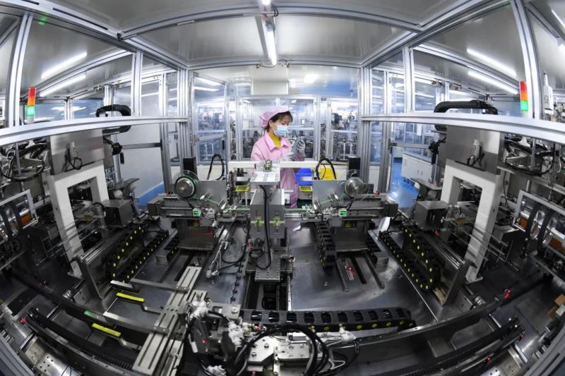 圖為江西省宜春市遠東電池有限公司的工作人員在生產(chǎn)線上趕制鋰電池產(chǎn)品。