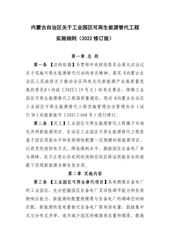 附件:1.《內(nèi)蒙古自治區(qū)關(guān)于工業(yè)園區(qū)可再生能源替代工程實(shí)施細(xì)則(2022修訂版)》