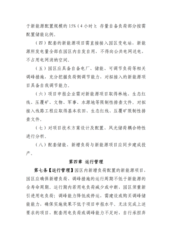 文件中要求,申報(bào)工業(yè)園區(qū)應(yīng)需滿足新增用電負(fù)荷配置的新能源項(xiàng)目,新增負(fù)荷需求的時(shí)間周期應(yīng)不低于新能源的全壽命周期。并要求新增負(fù)荷所配置的新能源項(xiàng)目配建儲能比例不低于新能源配置規(guī)模的15%(4小時(shí));存量自備負(fù)荷部分按需配置儲能比例。