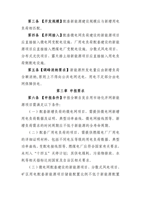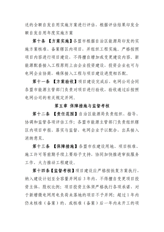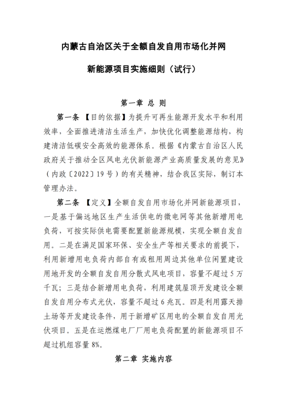 2.《內(nèi)蒙古自治區(qū)關(guān)于全額自發(fā)自用市場化并網(wǎng)新能源項(xiàng)目實(shí)施細(xì)則(試行)》