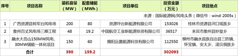 中國(guó)儲(chǔ)能網(wǎng)訊:3月24日,廣西壯族自治區(qū)發(fā)改委集中核準(zhǔn)3個(gè)風(fēng)電項(xiàng)目,總規(guī)模398MW,配套儲(chǔ)能裝機(jī)容量20%、時(shí)長(zhǎng)2小時(shí)(即159.2MWh),總投資302093萬(wàn)元。