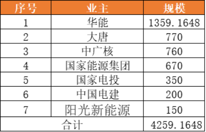根據(jù)光伏們查詢業(yè)主發(fā)現(xiàn),華能以1359.1648MW位居業(yè)主開發(fā)規(guī)模第一,大唐以770MW排名第二,中廣核760MW位列第三。此外,國家電投、中國電建、陽光新能源也有一定規(guī)模的項目。