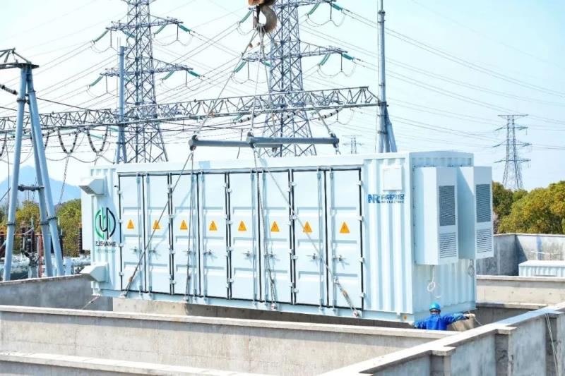 該儲能電站坐落在上虞35千伏紅星變電站及220千伏道墟變電站中間空白地塊,由12個集裝箱預制艙組成,9電池儲能艙,1個一次設備艙,1個二次設備艙,1個工具艙。電池儲能單元艙采用磷酸鐵鋰電池,儲能電量為12兆瓦時,相當于20多萬個普通家用充電寶的電量;其最大功率為6兆瓦,可支持約3000臺家用2匹空調同時工作2小時。投運后,將會顯著增強地區(qū)電網(wǎng)新能源消納、調峰調頻、電力保供能力。