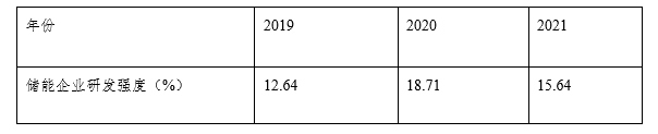 表2 2019-2021年儲(chǔ)能企業(yè)研發(fā)強(qiáng)度比較
