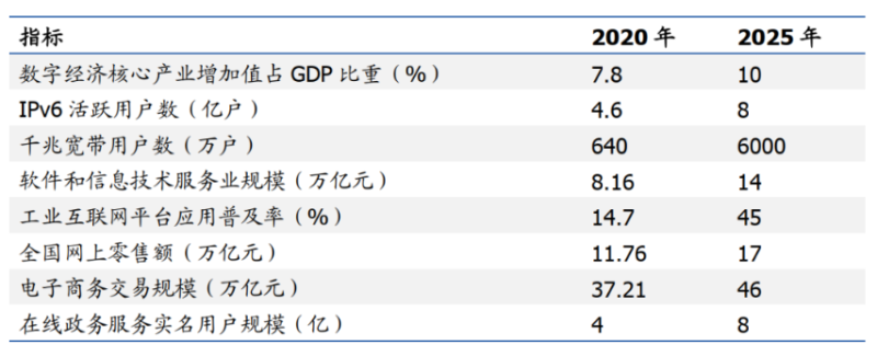 表1 “十四五”時(shí)期數(shù)字經(jīng)濟(jì)發(fā)展主要指標(biāo)(數(shù)據(jù)來(lái)源:中國(guó)政府網(wǎng)站)