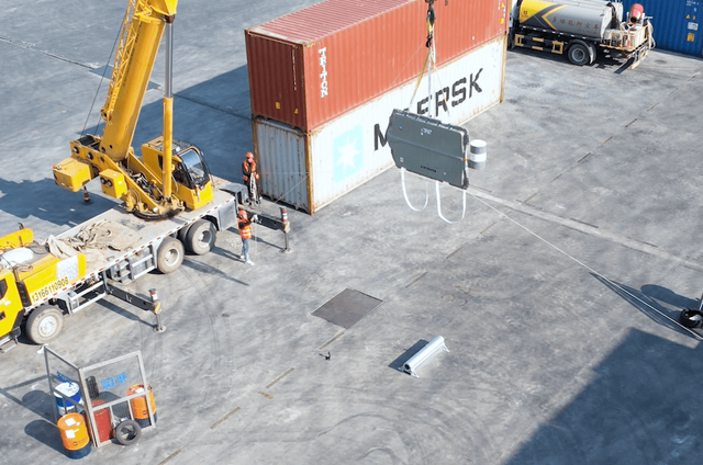 當(dāng)然,說(shuō)得再好聽(tīng)也不如來(lái)一次實(shí)際的碰撞測(cè)試更有說(shuō)服力,我們都知道相比起前后的撞擊,電動(dòng)車(chē)的電池包在側(cè)面碰撞時(shí)會(huì)更容易受到擠壓變形,進(jìn)而造成內(nèi)部電池模組短路,發(fā)生熱失控。而為了驗(yàn)證奧特能平臺(tái)電池包強(qiáng)度到底有多高,拆車(chē)實(shí)驗(yàn)室直接玩了把大的:讓整個(gè)電池包從5m的高度自由落體,和一個(gè)25cm粗的剛性圓柱來(lái)一場(chǎng)硬碰硬!