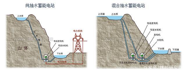 抽水蓄能有兩種方式,一種是純抽水蓄能,國內(nèi)建的大部分都是這類,比如廣州抽水蓄能電站、河北豐寧抽水蓄能電站;另一種是混合式抽水蓄能,是在純抽水蓄能的基礎(chǔ)上安裝有普通水輪發(fā)電機(jī)組,可以利用上河道的水流發(fā)電。后者既有儲能的作用,又擁有常規(guī)水電站的功能。