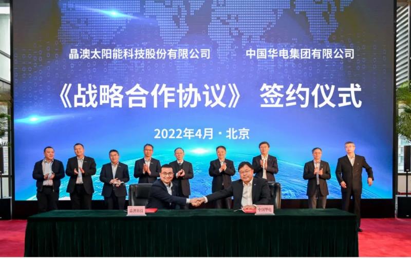 中國華電是國務(wù)院國資委監(jiān)管的特大型中央企業(yè)、世界500強(qiáng)企業(yè)。晶澳與中國華電合作始于2013年,截至2021年雙方累計(jì)簽署超4GW光伏組件合同,曾合作建設(shè)山西大同左云等多個(gè)“領(lǐng)跑者”示范項(xiàng)目,在山東、貴州、福建、內(nèi)蒙古等多地合作建設(shè)大型光伏項(xiàng)目,形成了良好的合作關(guān)系。此次簽署戰(zhàn)略合作協(xié)議,晶澳科技與中國華電將堅(jiān)持平等尊重、優(yōu)勢(shì)互補(bǔ)、共同發(fā)展的原則,充分發(fā)揮各自在資金、技術(shù)、市場(chǎng)、品牌等方面優(yōu)勢(shì),建立雙方高層溝通協(xié)調(diào)機(jī)制,在光伏組件供應(yīng)、項(xiàng)目開發(fā)、技術(shù)支持、設(shè)備服務(wù)采購、產(chǎn)業(yè)資源和海外市場(chǎng)開拓等方面開展合作。