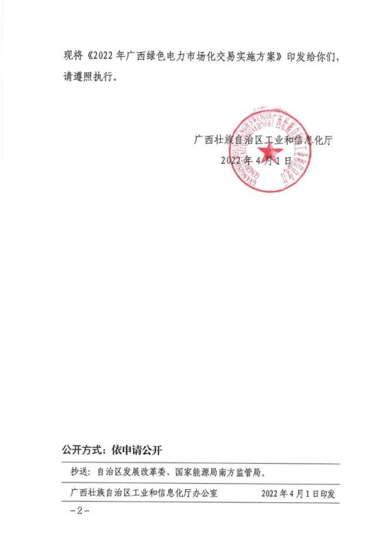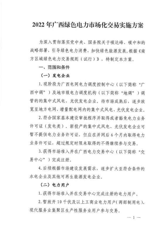 中國(guó)儲(chǔ)能網(wǎng)訊:4月1日,廣西工業(yè)和信息化廳印發(fā)《2022年廣西綠色電力市場(chǎng)化交易實(shí)施方案》,明確了廣西自治區(qū)綠色電力交易的相關(guān)細(xì)節(jié)問題。