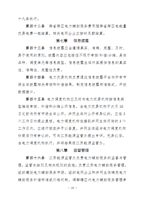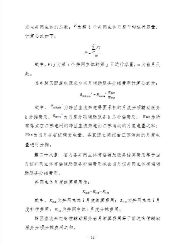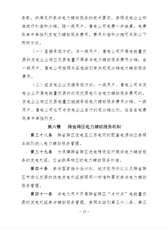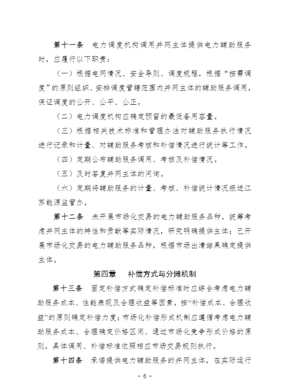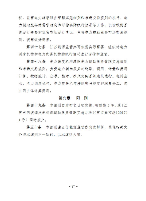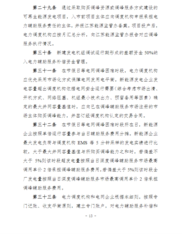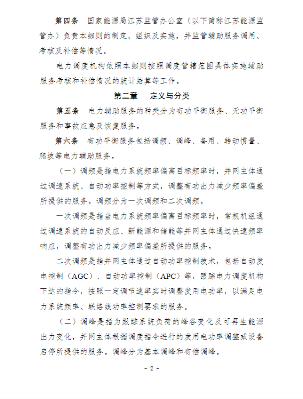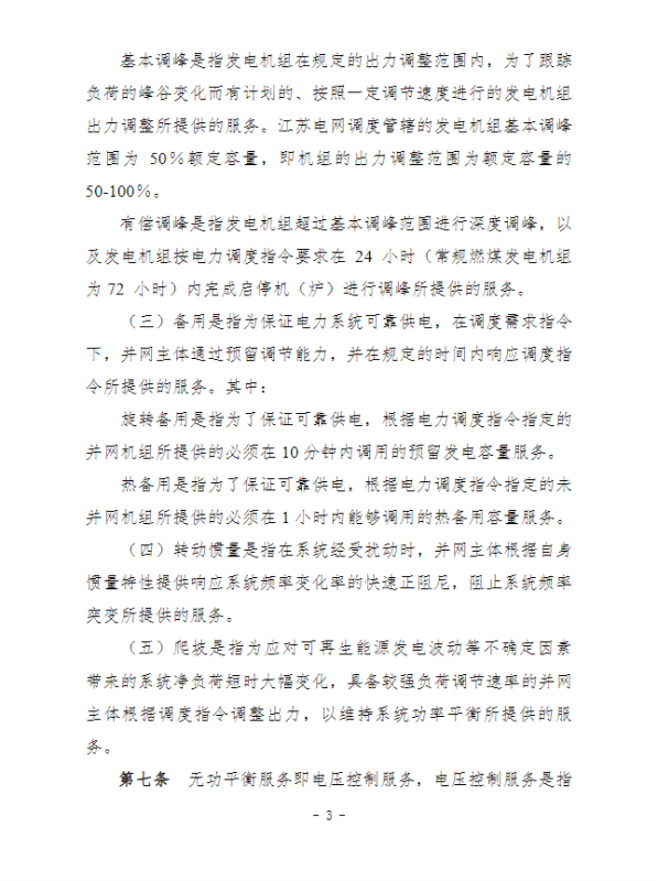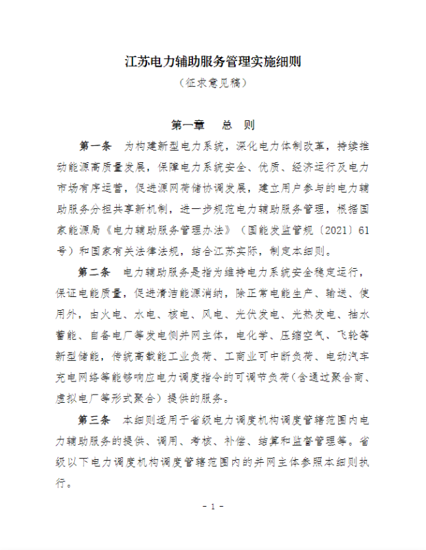 江蘇電力輔助服務(wù)管理實(shí)施細(xì)則(征求意見(jiàn)稿)