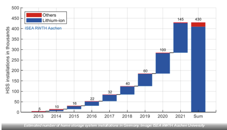 自從2013年以來,德國(guó)住宅儲(chǔ)能系統(tǒng)的部署數(shù)量一直在增長(zhǎng),工業(yè)儲(chǔ)能系統(tǒng)(ISS)也是如此,盡管其增長(zhǎng)速度較慢。