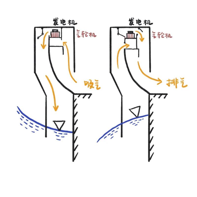 具體來講是利用波浪產(chǎn)生的水面位置變化引起容器內(nèi)空氣容積變化,通過壓縮容器內(nèi)的空氣驅(qū)動葉輪,進(jìn)而帶動發(fā)電裝置發(fā)電。
