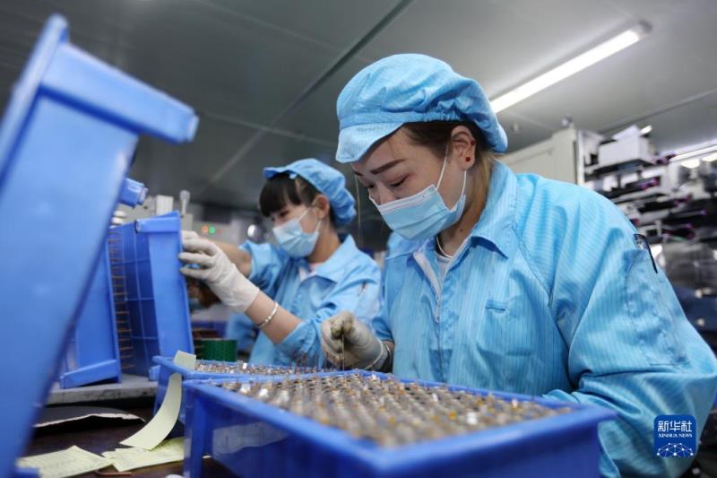 2021年8月7日,在安徽省淮北市高新技術產(chǎn)業(yè)開發(fā)區(qū),工人在一家鋰電池生產(chǎn)企業(yè)的車間內(nèi)作業(yè)。新華社發(fā)(萬善朝 攝)