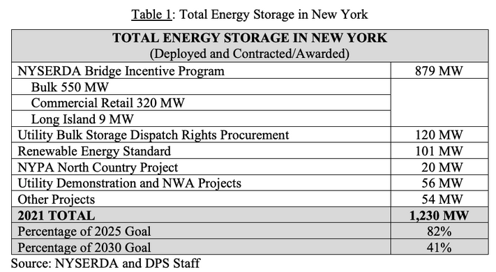紐約州公共服務(wù)部(DPS)表示,截至2021年底,已經(jīng)部署或簽約的儲能項(xiàng)目總裝機(jī)容量為1,230MW,約占1,500MW目標(biāo)的82%。然而,該州的儲能部署進(jìn)展似乎很緩慢。
