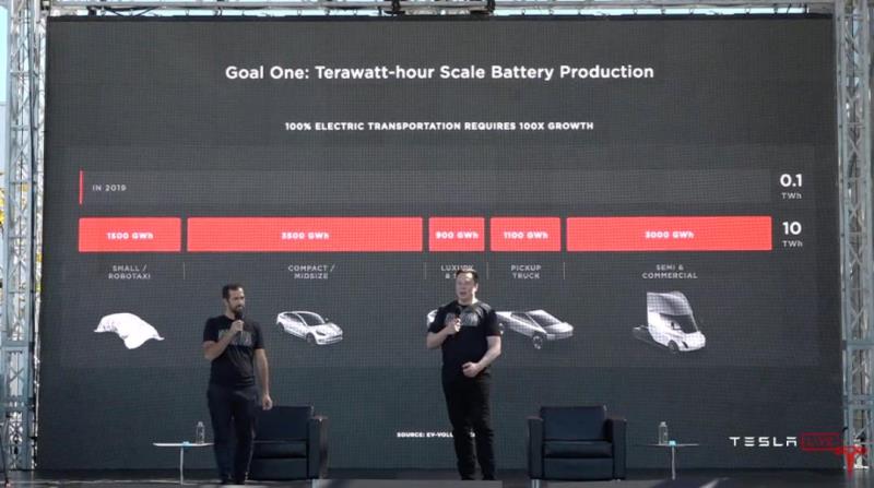2020 特斯拉電池日,馬斯克提出了 TWh 級別的電池生產目標