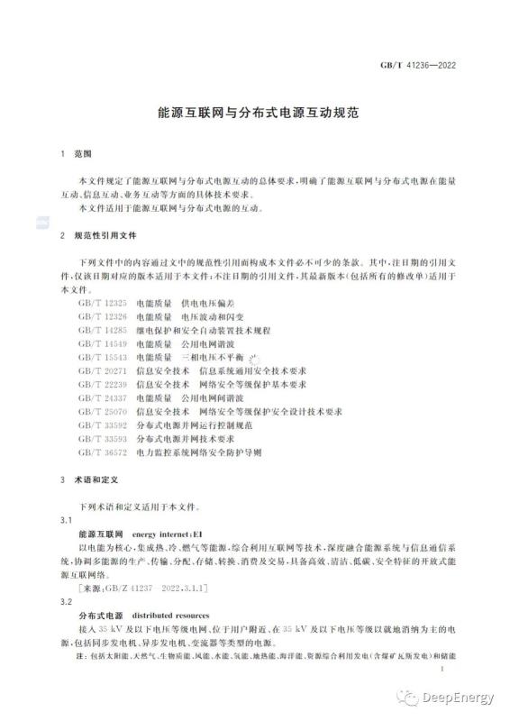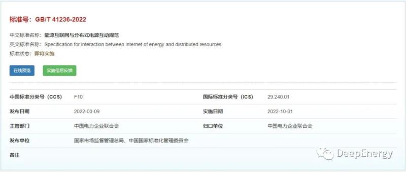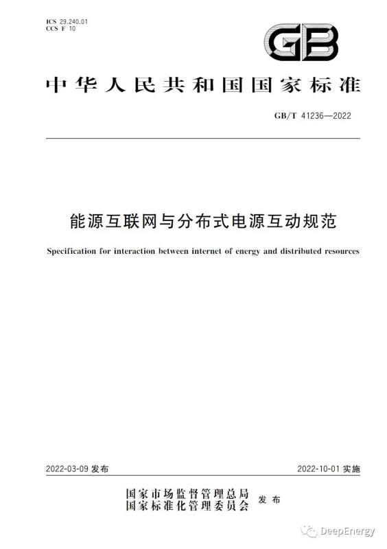 中國儲能網(wǎng)訊:2022年3月9日,國家市場監(jiān)督管理總局、中國國家標(biāo)準(zhǔn)化管理委員會發(fā)布《能源互聯(lián)網(wǎng)與分布式電源互動規(guī)范》,該標(biāo)準(zhǔn)將于2022年10月1日起施行。